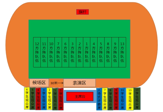 职责:负责安排篮球场大本营位置划分和侯场占位安排,组织入场式候场。