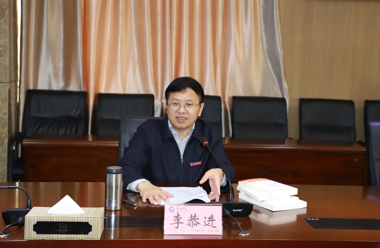 3月26日上午,学校在黄金校区召开党委中心组党史专题学习会暨党史学习教育领导小组会。学校党委书记、党史学习教育领导小组组长李恭进主持学习会,学校领导、各党群部门主要负责同志、各二级党委(总支)书记参加。