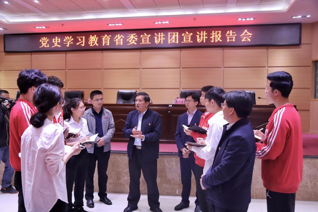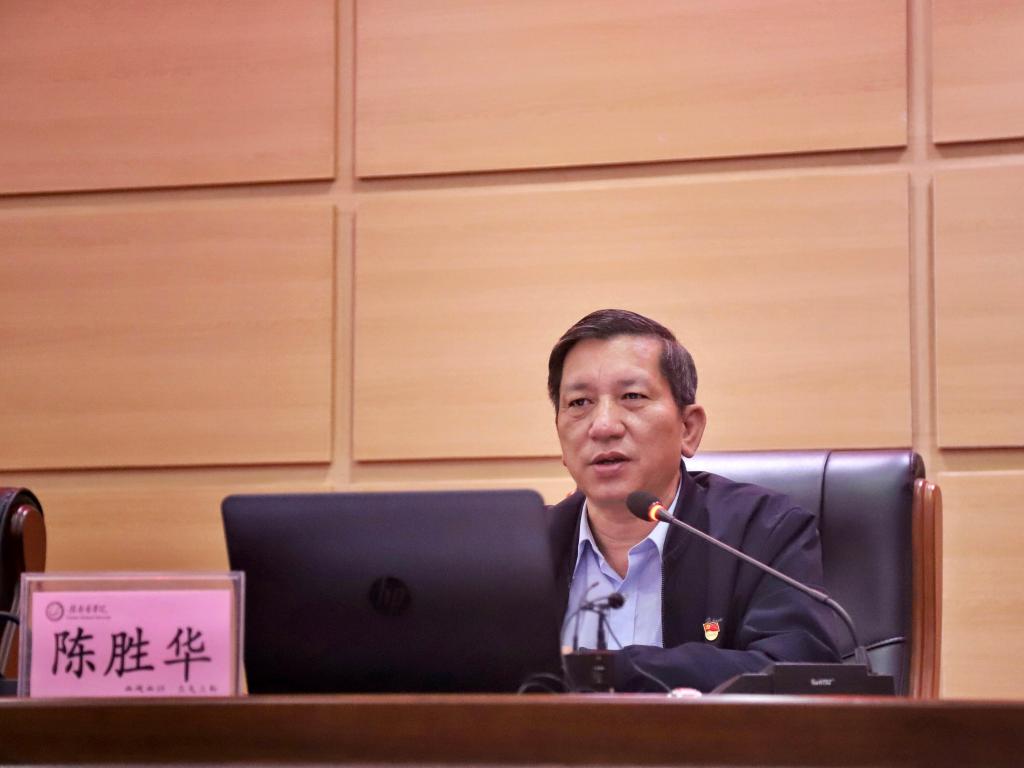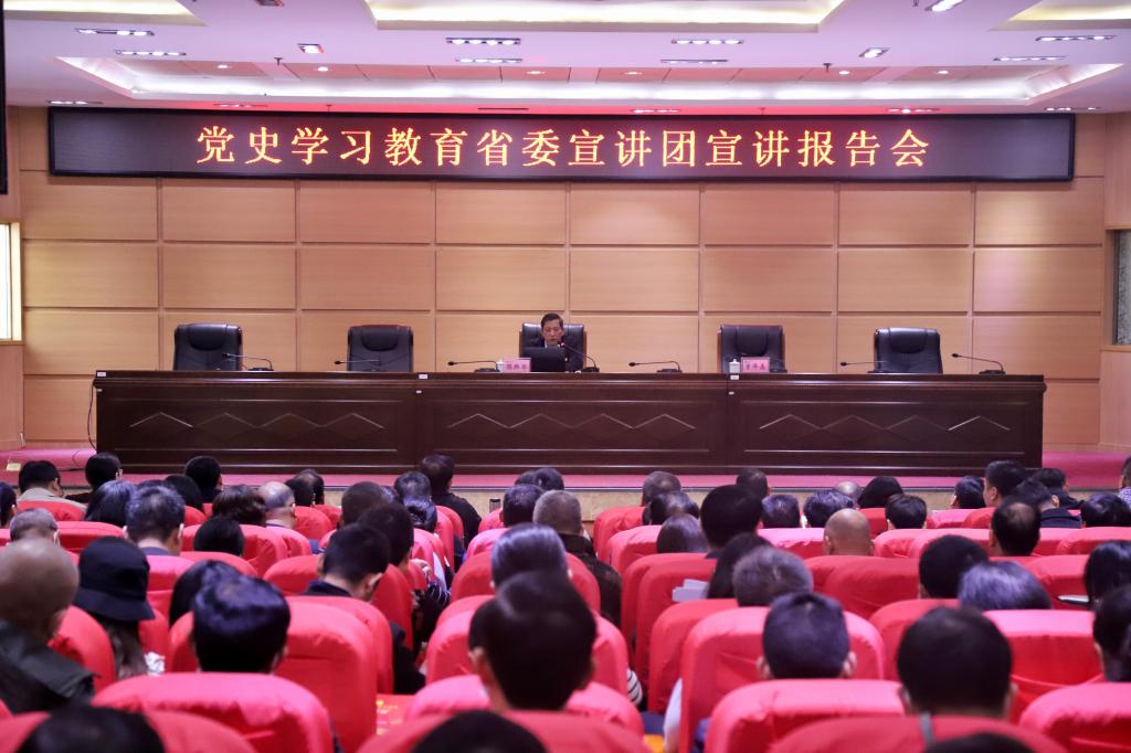 “中国革命历史是最好的营养剂,重温这部伟大历史能够受到党的初心使命、性质宗旨、理想信念的生动教育,必须铭记光辉历史、传承红色基因……”4月12日上午,根据省委党史学习教育领导小组统一安排,党史学习教育省委宣讲团成员、中国井冈山干部学院教学科研部党史教研中心主任、教授陈胜华在学校作宣讲报告。学校党委书记李恭进,校领导陈亮、黄瑞忠、叶军明、肖树辉、张小康、彭维杰出席报告会,学校党委副书记曾泽鑫主持,全校处级干部、党支部书记、学生党员代表等共计200余人共同聆听了宣讲报告。