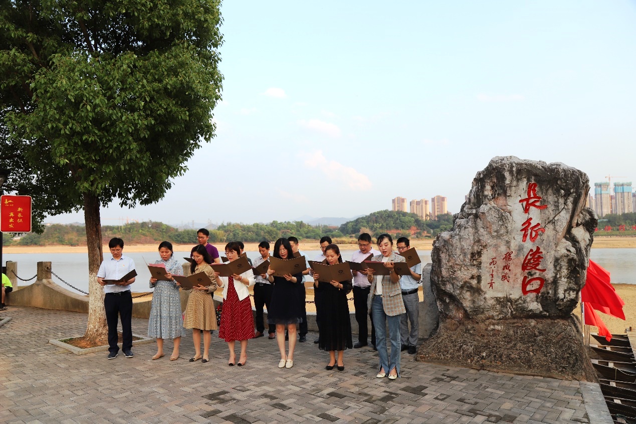 看,参观长征第一渡。全体党员在长征第一渡口细细参观,聆听长征渡口的历史故事,厚重的石刻、沧桑的渡口码头,仿佛将大家带回到当年史诗般的长征岁月。