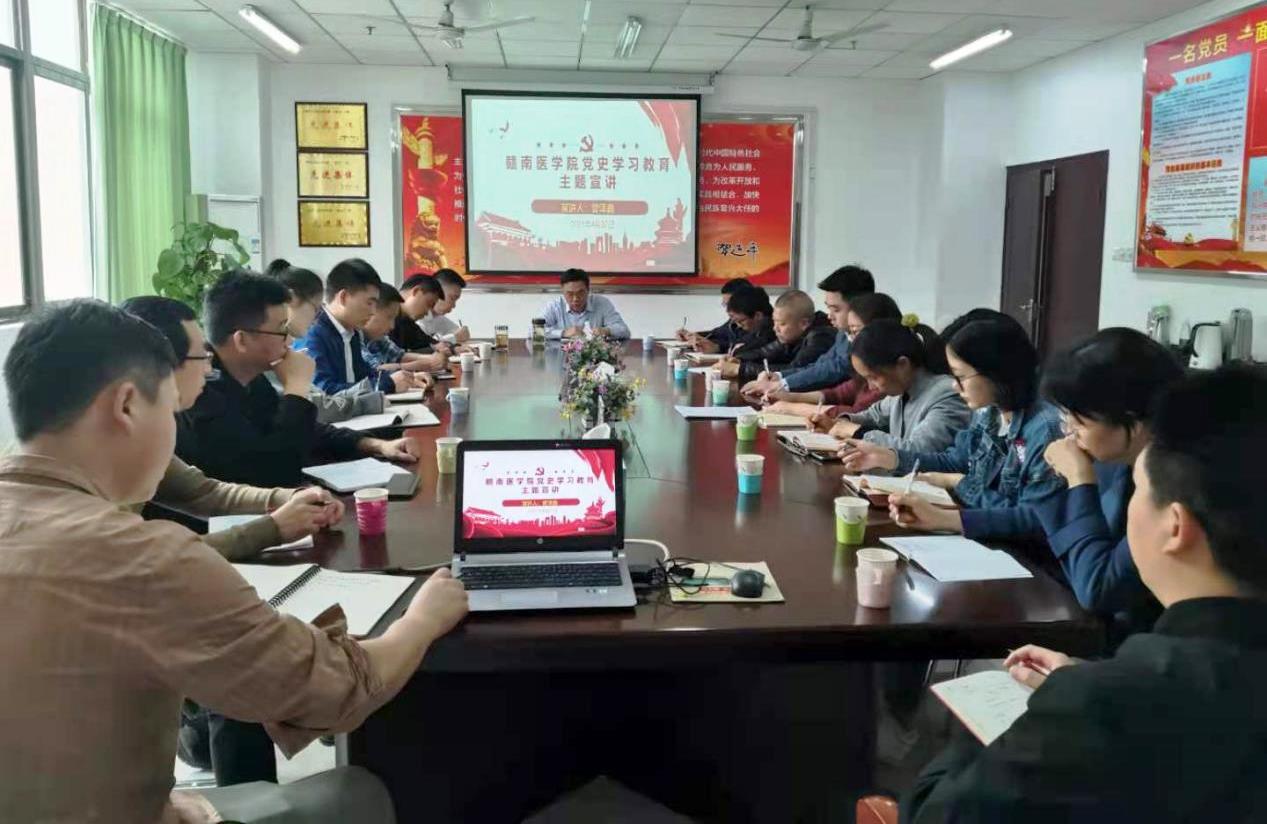 4月27日下午,学校党委副书记曾泽鑫在黄金校区开展党史学习教育主题宣讲,机关党委第九支部和基础医学院党委第五支部全体党员聆听宣讲。