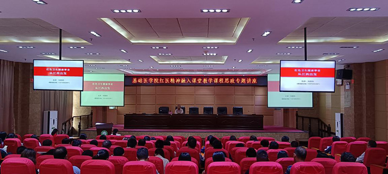 5月21日下午,基础医学院课程思政教学讲座在黄金校区举行。学校中央苏区医疗卫生史与健康中国战略研究中心执行主任刘善玖作题为《红色卫生健康事业从江西出发》的专题讲座。
