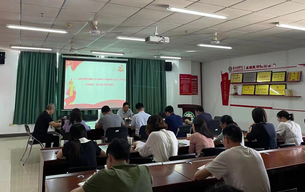 5月18日下午,学校党委副书记曾泽鑫以《扎实开展主题教育 自觉用党的创新理论武装头脑》为题,为基础医学院第五党支部和机关党委第九支部全体党员讲授专题党课。