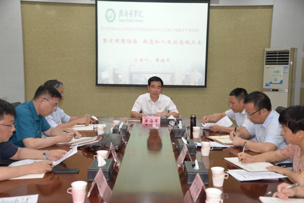5月31日,学校党委委员、纪委书记,省监委驻学校监察专员、二级高级监察官黄海军以《坚定理想信念 做党和人民的忠诚卫士》为题作学习贯彻习近平新时代中国特色社会主义思想主题教育和纪检监察干部队伍教育整顿专题党课。全校专、兼职纪检监察干部20余人聆听党课。