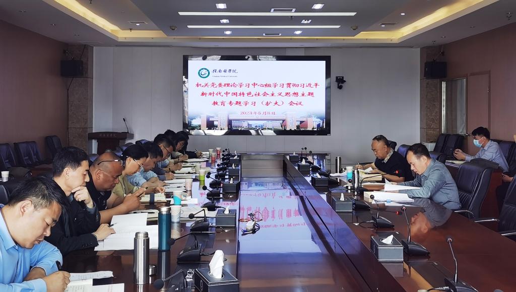 5月8日,机关党委理论学习中心组召开了学习贯彻习近平新时代中国特色社会主义思想主题教育专题学习扩大会。学校党委委员、统战部长、机关党委书记赖传景主持学习会,机关党委班子成员、机关全体处级干部等50余人参加学习。