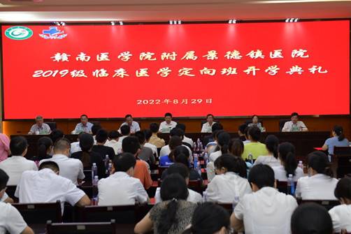 8月29日,我校2019级临床医学定向本科班开学典礼在景德镇第二人民医院(附属景德镇医院)隆重举行。学校党委副书记、校长张小康,景德镇第二人民医院(附属景德镇医院)党委书记张将、校教务处处长严宜明、全科医学学院党委书记张自翔出席并讲话。景德镇第二人民医院(附属景德镇医院)全体院领导、科室负责人,全科医学学院党委副书记、院长罗晓婷,全科医学学院党委委员、副院长周爱琴及相关老师,2019级临床医学定向本科班全体学生共计80余人参加了开学典礼。典礼由景德镇第二人民医院(附属景德镇医院)党委副书记、院长刘芩主持。