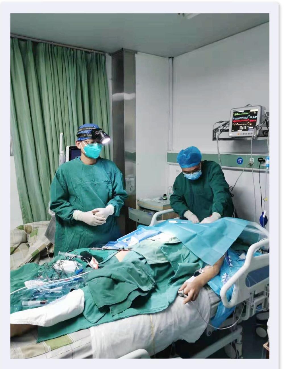 1月22日,刚吃过午饭就接到通知,信丰县医院有一位高热的重症肺炎患者病情危急,需要我们前往紧急援助安装ECMO。高热,重症肺炎,不能排除新冠肺炎可能,这些敏感词汇在我脑中一闪而过,来不及多想,带上装备,与同事匆匆往县里赶。当我们到达时,患者情况已经十分危重,心率快,血氧低,时间就是生命,我们立马动手开始安装ECMO,一切妥当后,我们又冒着极高风险,同车运送该病人转往我院治疗,克服重重困难,一路密切监护,等安顿好患者,已是深夜,因需要排查新冠病毒肺炎,不敢与爱人和孩子接触,只好在医院值班室隔离休息。